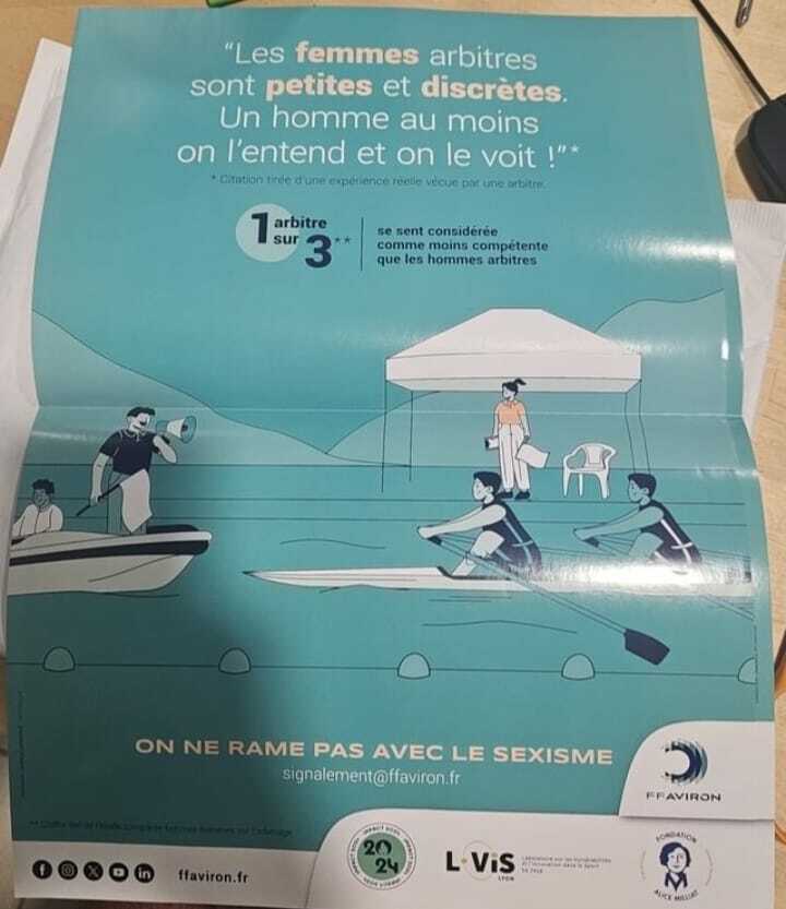 La Fédération Française d'Aviron a sorti l'affichette ci-dessous et l'a distribuée dans tous les clubs car on ne rame pas avec le sexisme !